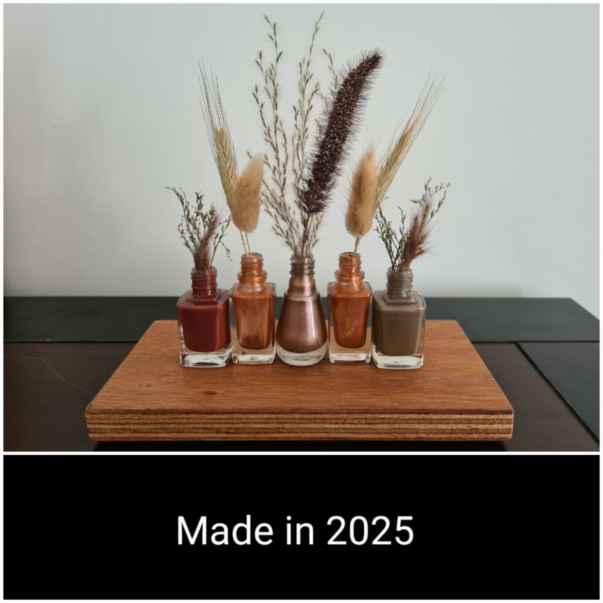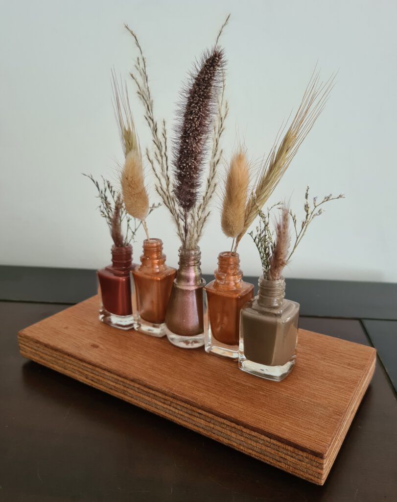 • Repurpose: 5 Nagellak flesjes. Leeg, schoongemaakt en gepolijst.