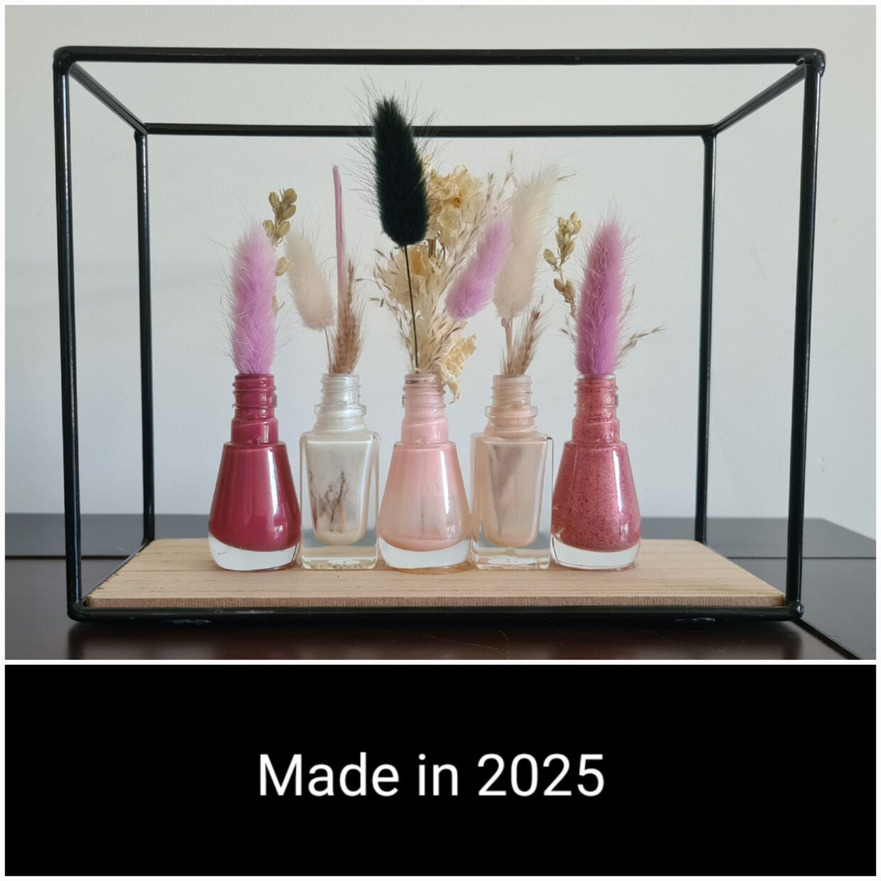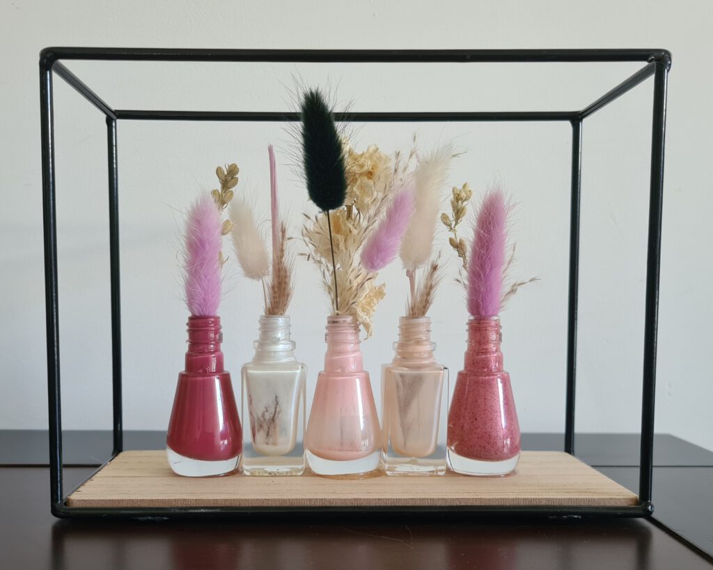 • Repurpose: 5 Nagellak flesjes. Leeg, schoongemaakt en gepolijst.
