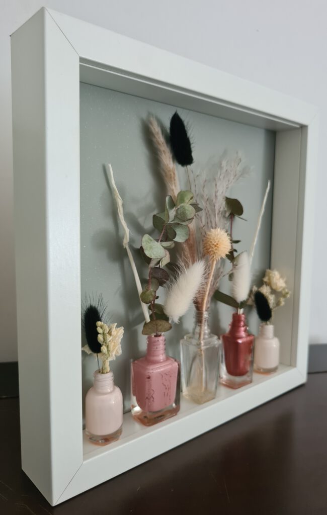 - Repurpose: 5 Nagellak flesjes. Leeg, schoongemaakt en gepolijst.