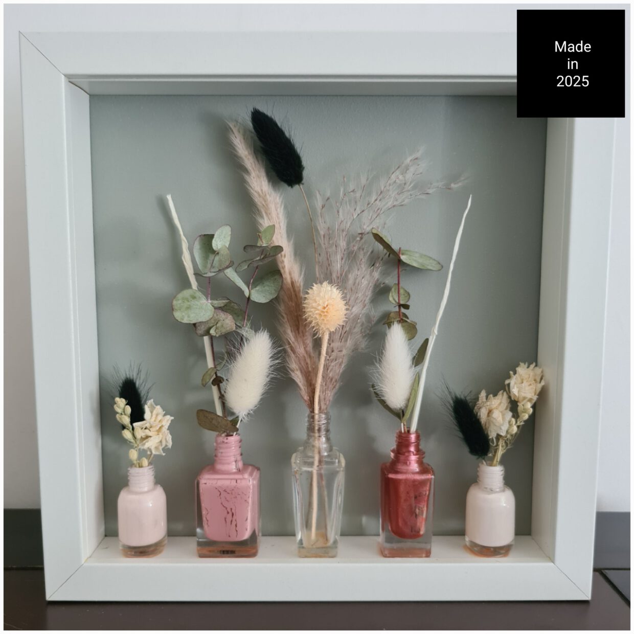 - Repurpose: 5 Nagellak flesjes. Leeg, schoongemaakt en gepolijst.