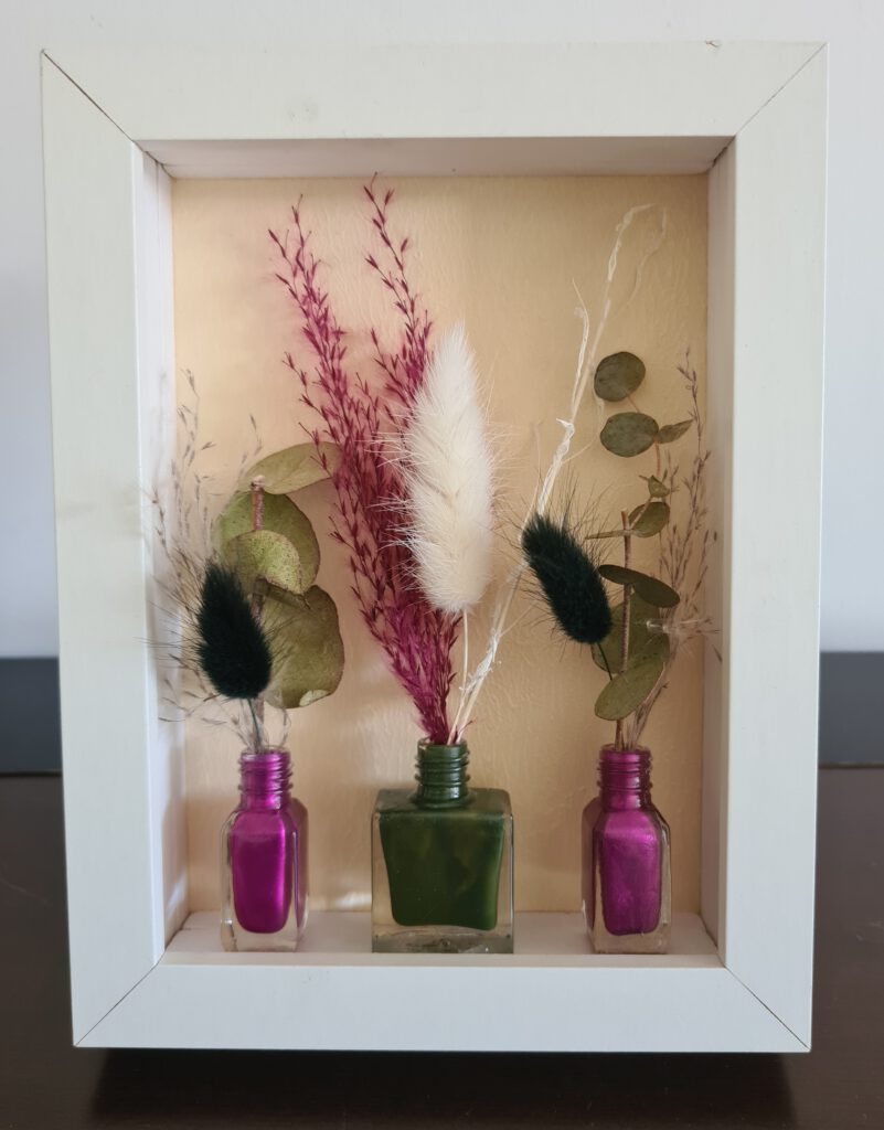 - Repurpose: 3 Nagellak flesjes. Leeg, schoongemaakt en gepolijst.