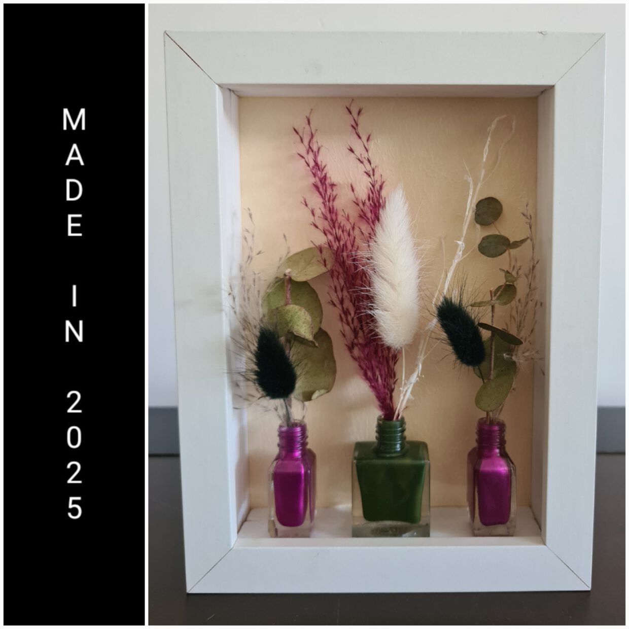 - Repurpose: 3 Nagellak flesjes. Leeg, schoongemaakt en gepolijst.