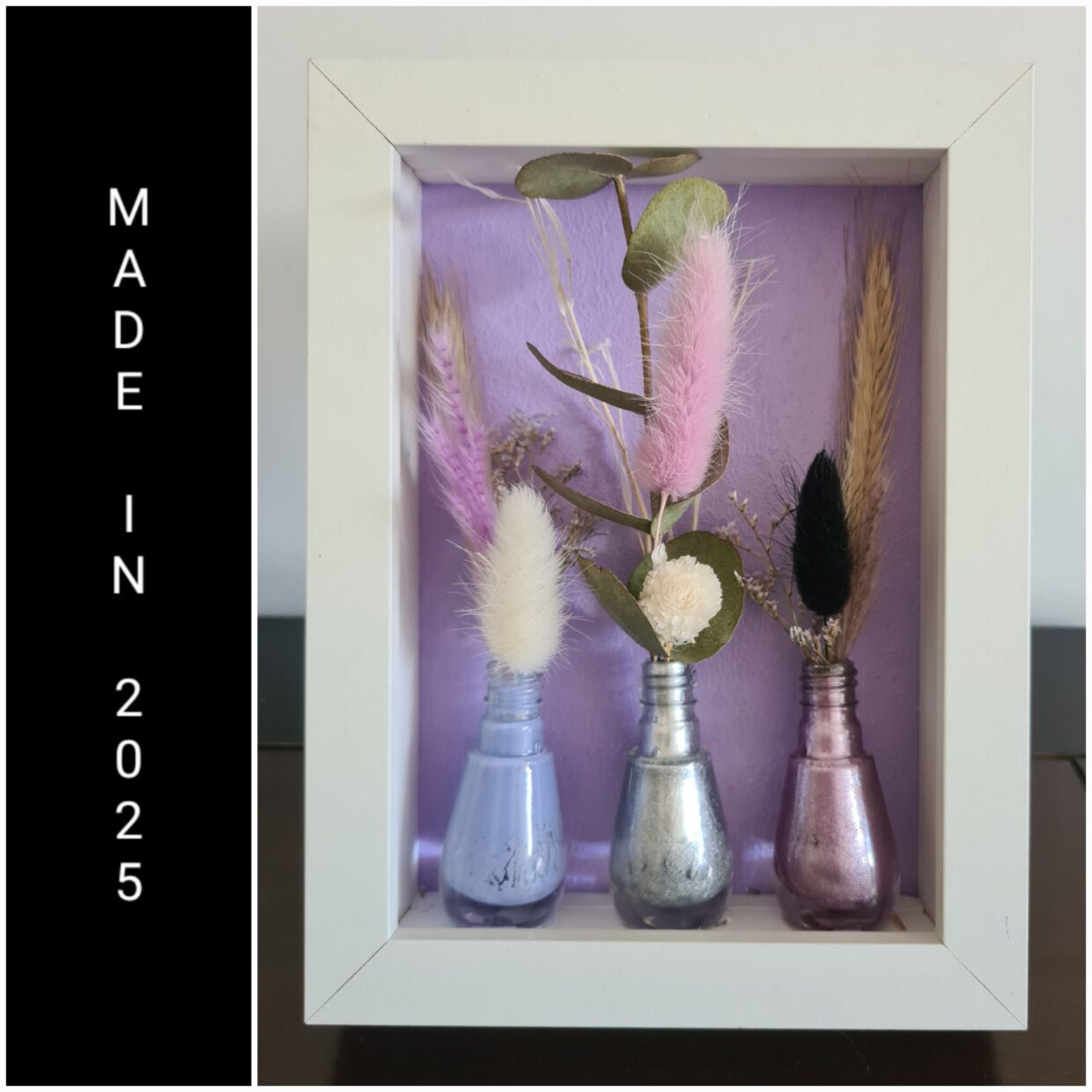 • Repurpose: 3 Nagellak flesjes. Leeg, schoongemaakt en gepolijst.